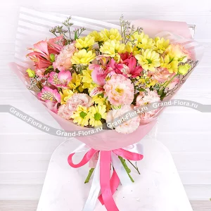 Солнечный день - букет-новинка из хризантемы, альстромерии и эустомы